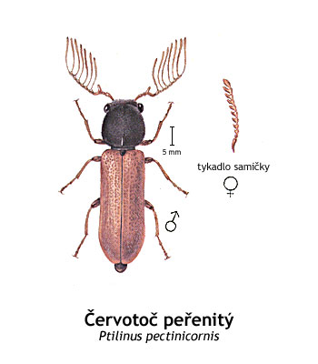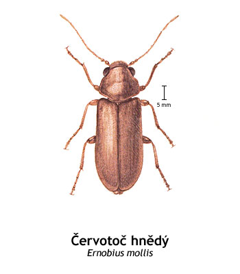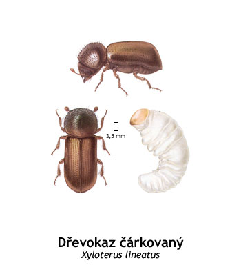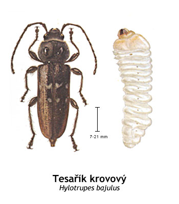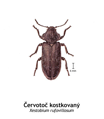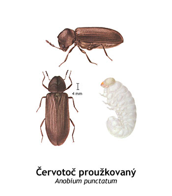 Tesařík krovový, Tesařík fialový, Červotoč umrlčí, Červotoč proužkovaný